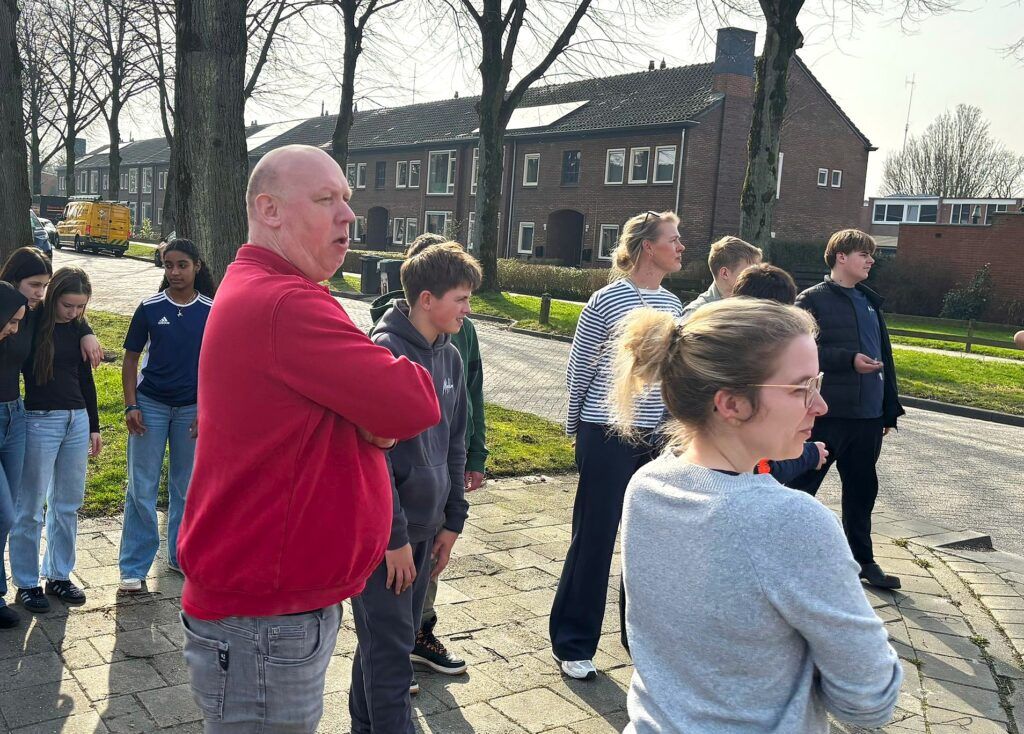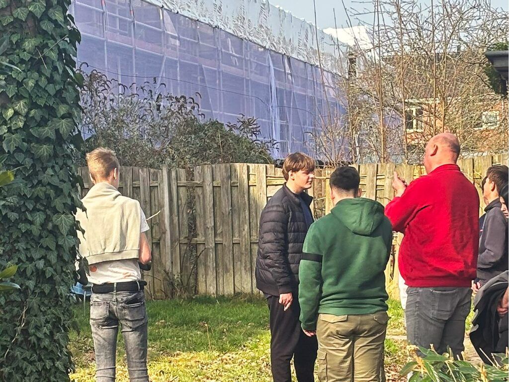 De andere groep ging op pad met Acantus, waar het bezoek begon bij CBS De Kern. Aannemer Jan van Plegt‑Vos gaf uitleg over het lopende renovatieproject en de samenwerking tussen verschillende vakmensen. Vervolgens trok de groep de wijk in om te zien hoe renovatie en verduurzaming in de praktijk vorm krijgen.