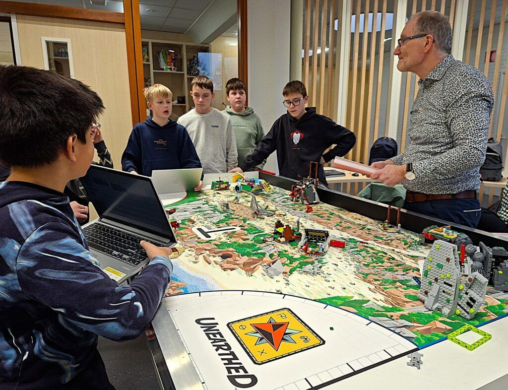 De afgelopen weken werkten leerlingen van Winkler Prins Veendam (mavo onderbouw) en het dr. Aletta Jacobs College (trajectklas MHV) ieder op hun eigen school aan hun FIRST® LEGO® League‑project. Ze bouwden, testten en programmeerden hun LEGO®‑robots en verdiepten zich in het thema van dit jaar: “UNEARTHED” – een creatieve ontdekkingsreis waarin leerlingen door in het verleden te graven technieken van de toekomst leren kennen.